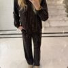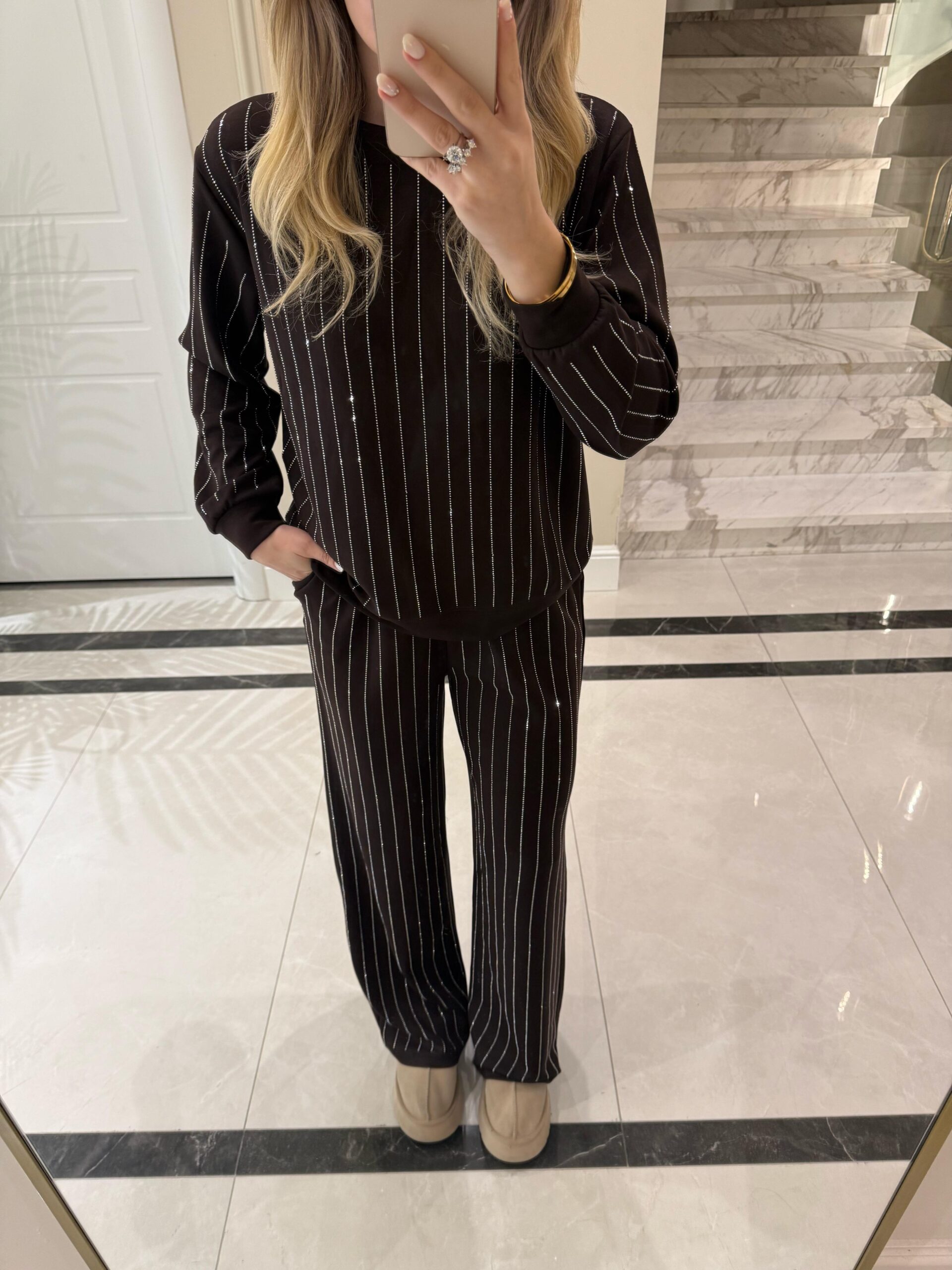 Boy / Kilo 160 cm / 48 kg Üst : Bisiklet Yaka , Taşlı / Alt : Bel Lastikli , Geniş Paça , Cepli