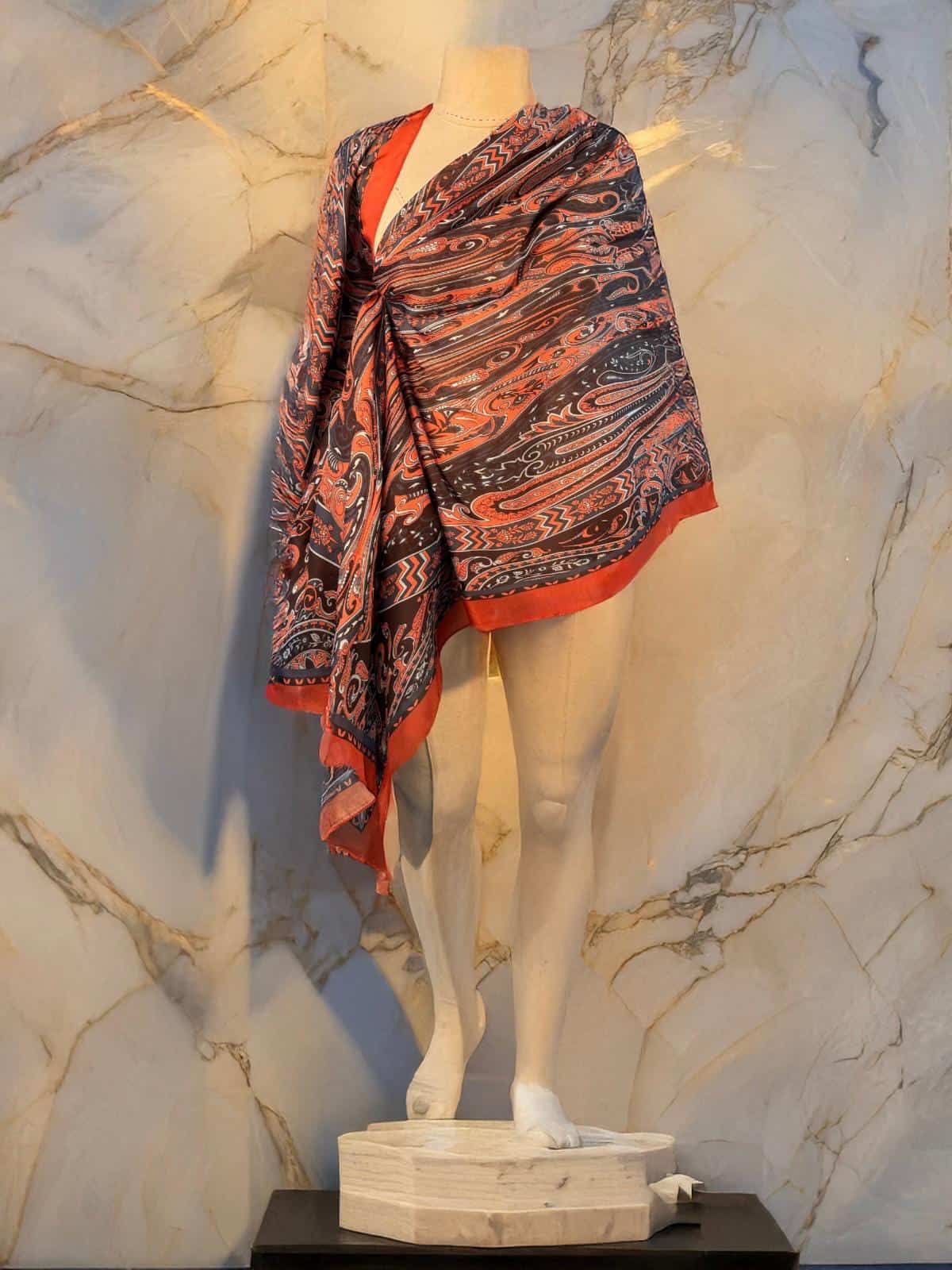 Turuncu Sarmaşık Desen Pamuk Şal – Touch İpek