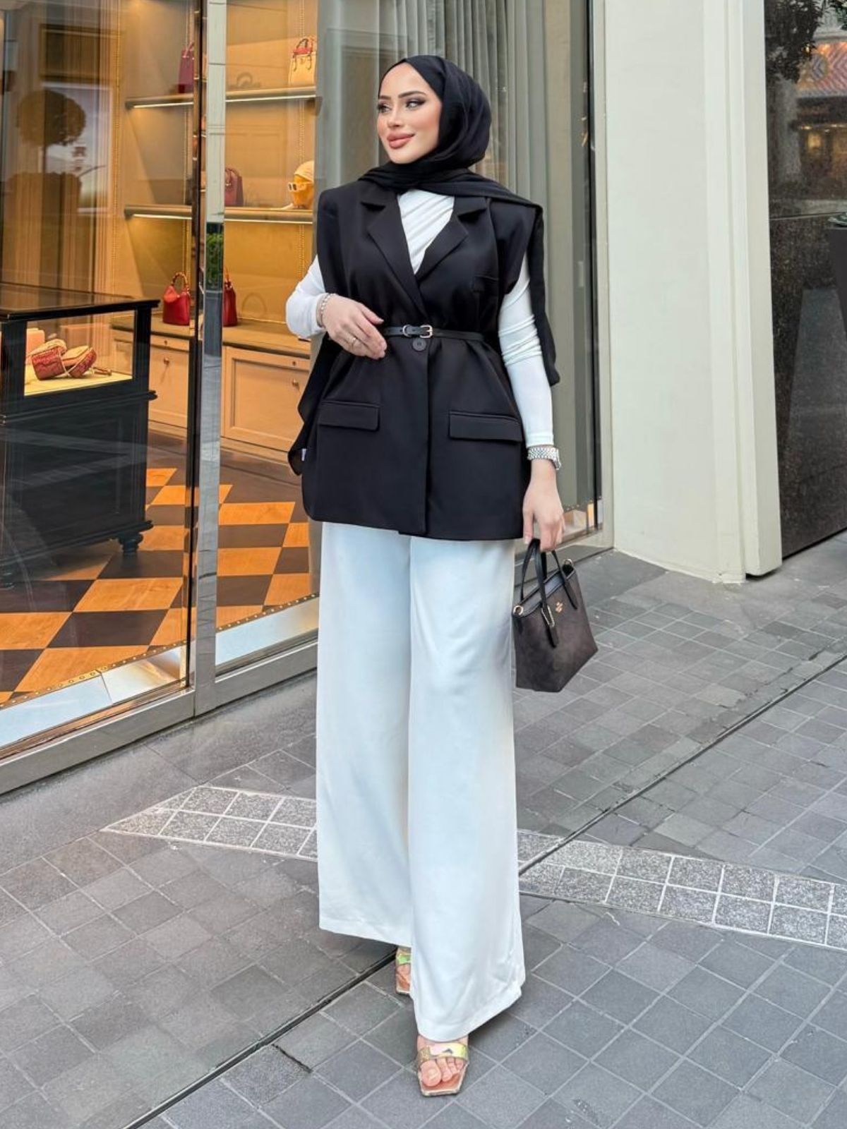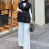• Kombin: Görseldeki gibi beyaz boğazlı bluz ve bol paça pantolonlarla kombinleyerek sofistike ve katmanlı bir görünüm elde edin.