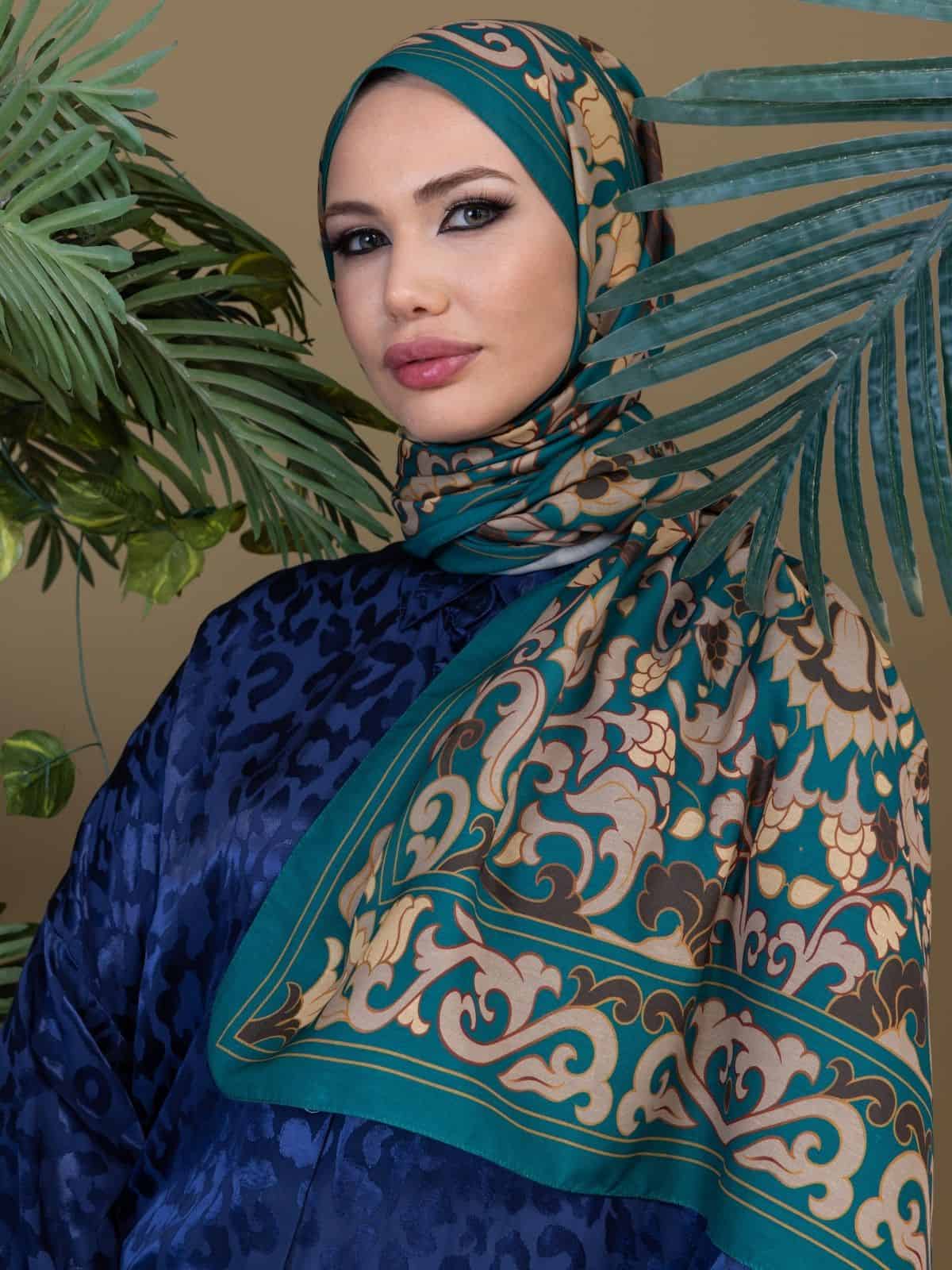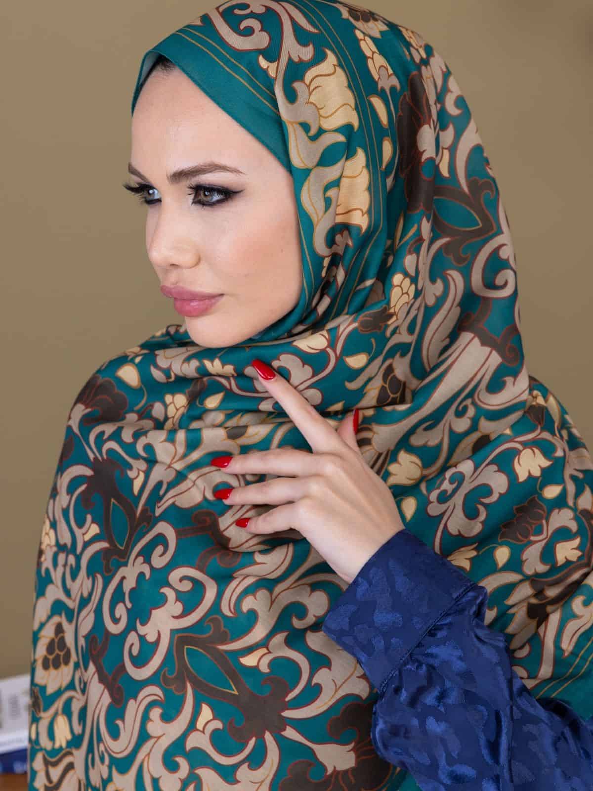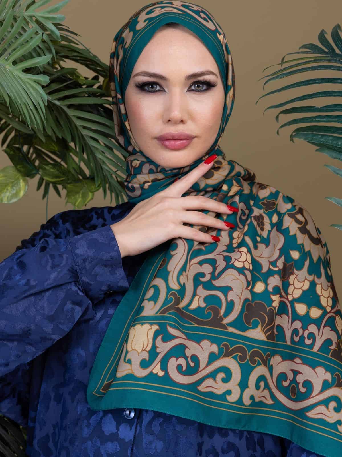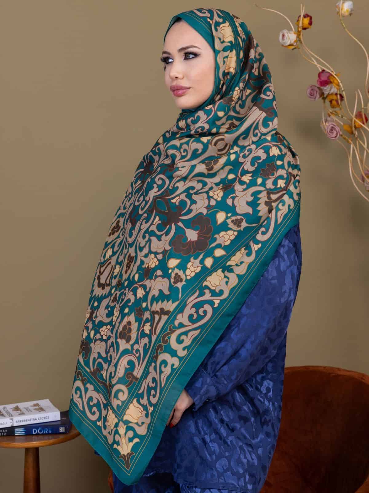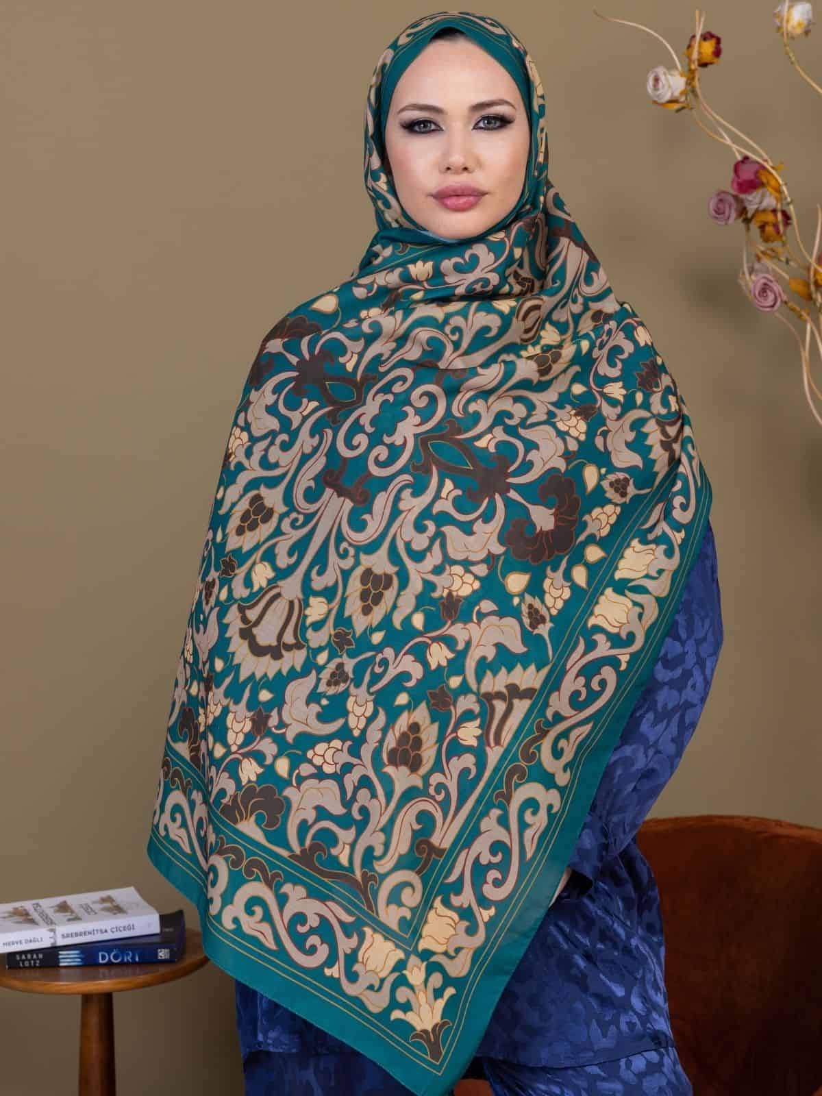 Gül desenli zarif baskısı, feminen ve şık bir duruş sergiler. Soft renk geçişleri ve yeşilin huzur veren tonları, günlük kombinlerden özel davet stillerine kadar her ortama uyum sağlar. Uçuş uçuş yapısı sayesinde kolay şekil alır, kayma yapmaz.